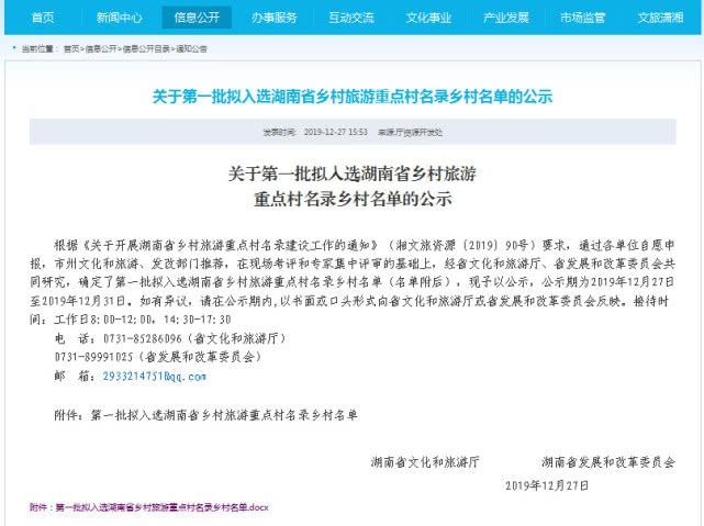 湖南省文化和旅游厅公布了第一批湖南省乡村旅游重点村名单通知,决定将长沙市长沙县开慧镇锡福村等36个乡村列入湖南省乡村旅游重点村名录。