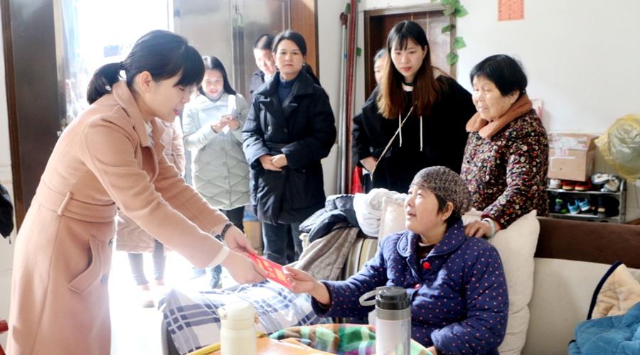 “宝贝,你今后要好好读书,报答爷爷奶奶的养育之恩!”胡佳佳现读于桃源县第九中学,与爷爷弟弟借住在漳江街道漳江阁社区亲戚家。父母离异后将姐弟俩留给年迈的爷爷奶奶照顾,全家生活及学习费用全靠奶奶在广州务工所得。宋磊为姐弟俩送上了慰问金和新书包,并勉励孩子们好好学习,刻苦读书,早日成才。随后,宋磊一行还集中慰问了其他困难对象,为她们传递了新春的美好祝福与祝愿。