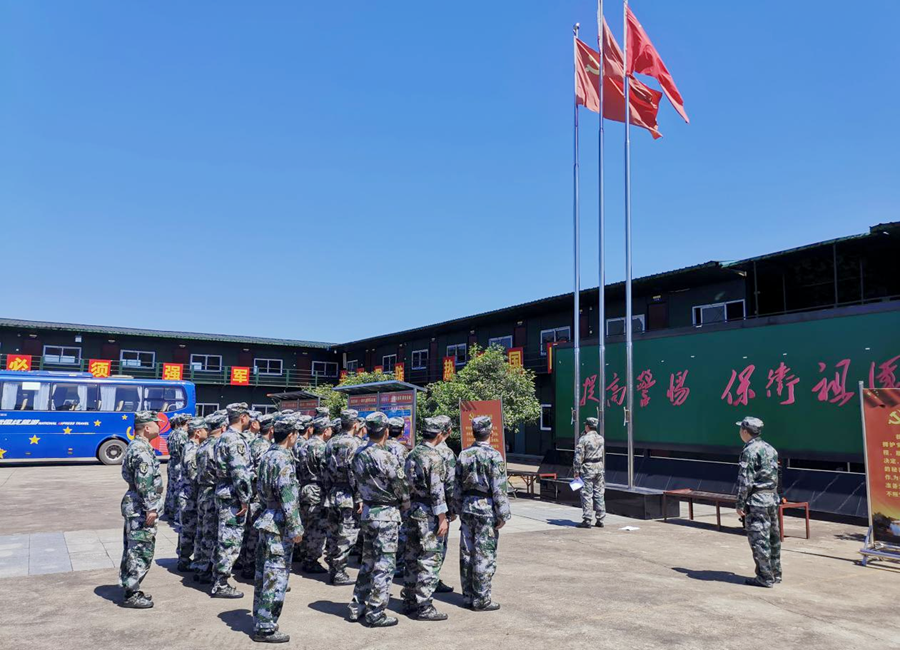 “我是中国民兵,我宣誓:服从中国共产党的领导......坚决完成任务,永不背叛祖国。”嘹亮的宣誓声回荡整个训练场......