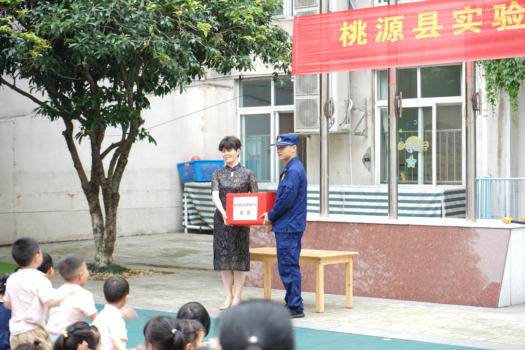 在5月12日,第13个全国防灾减灾日当天,桃源县消防救援大队走进桃源实验幼儿园举行了防灾减灾应急疏散和消防灭火演练,为全园师生展示讲解消防安全装备常识,并向学校赠送了消防科普拼图绘本。