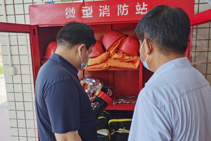 漳江街道党工委书记康少兵检查车湖垸敬老院的应急物资准备情况