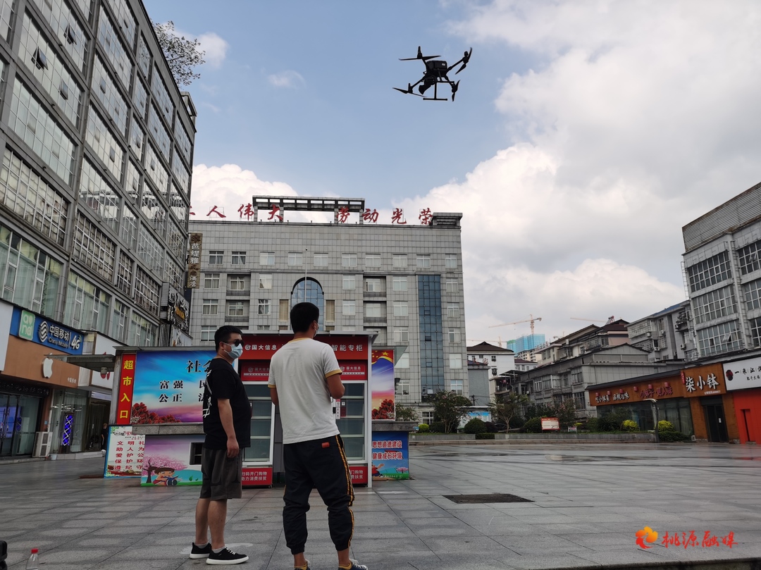 为了更好地进行防疫宣传,桃源公安充分利用起已有的设备,不仅出动人力,还使用高科技设备无人机,在县城内重点区域进行喊话宣传,不断提高市民对疫情防控相关知识的了解,增强群众自我防护意识。