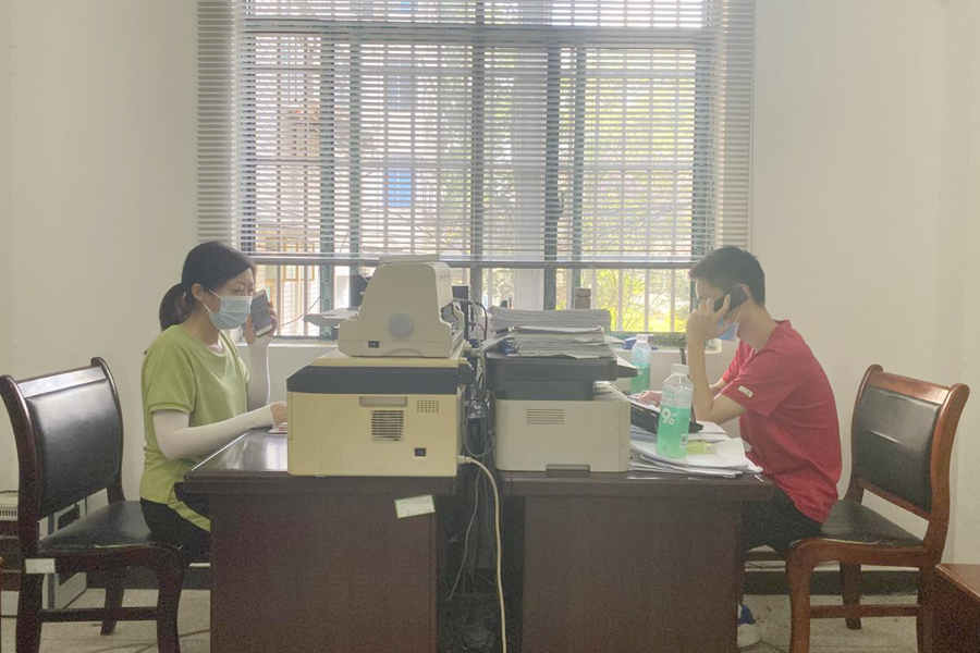 摸排调查组正在进行现场电话摸排