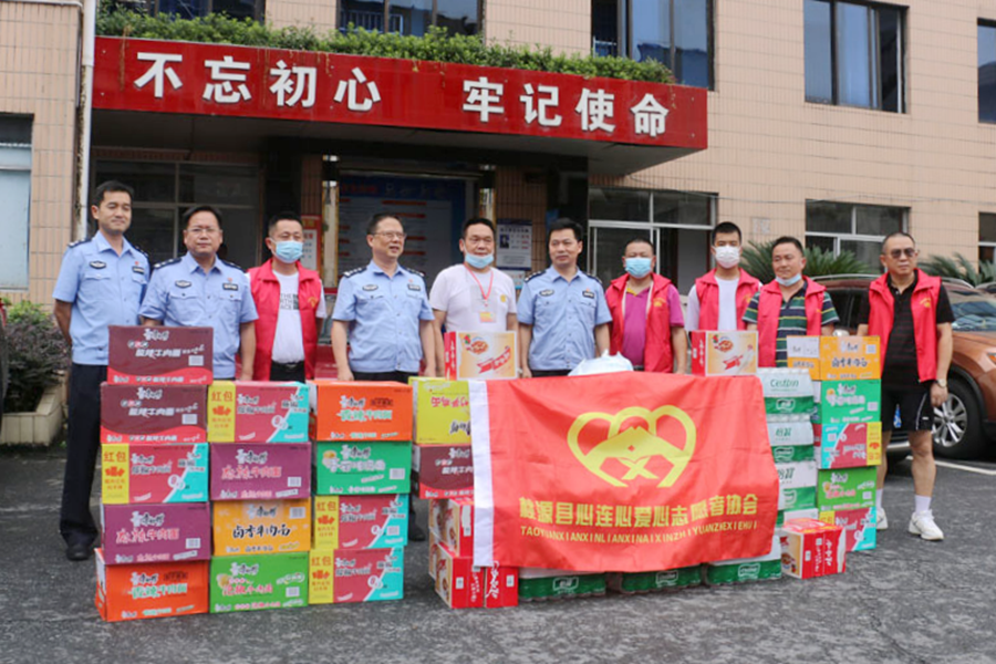 夏日的酷热让坚守在疫情防控一线的交警不仅要严防疫情入侵,更要战高温、斗酷暑。8月17日,桃源县心连心爱心志愿者协会会长吉立云带领一众爱心志愿者来到县交警大队为坚守在一线的交警送上、口罩、方便面等数十件防暑防疫物资,并表达对头顶烈日,奋战在一线,以高度的责任感确保道路有序畅通的交警同志的敬意和感谢之情。
