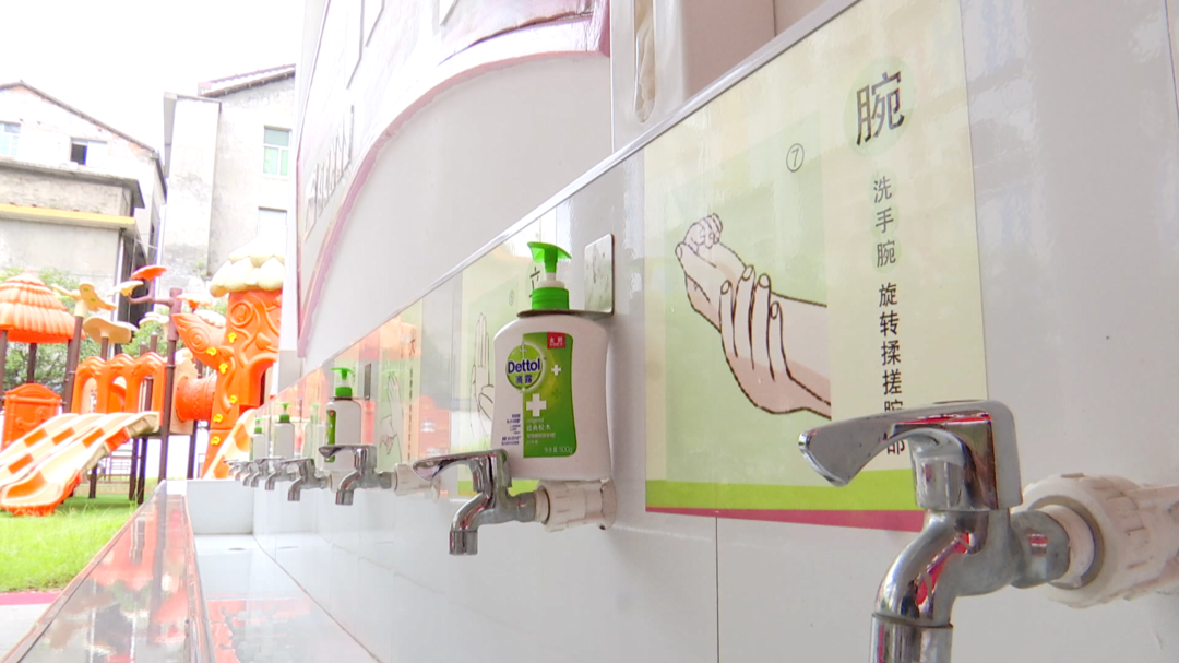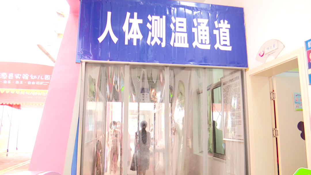 桃源县实验幼儿园 副园长刘俊兰:“我们的孩子,经过这个人体测温通道之后,就会到达我们这个保健室,然后由我们专业的保健医对孩子的手、嘴、全身进行一个全方位的检测,孩子在无异常的情况下,我们就会让孩子取一片绿色的健康卡。孩子取完卡后,入园前,会在我们设定的流动水洗手的位置洗手,洗完手后才能正常入园。”