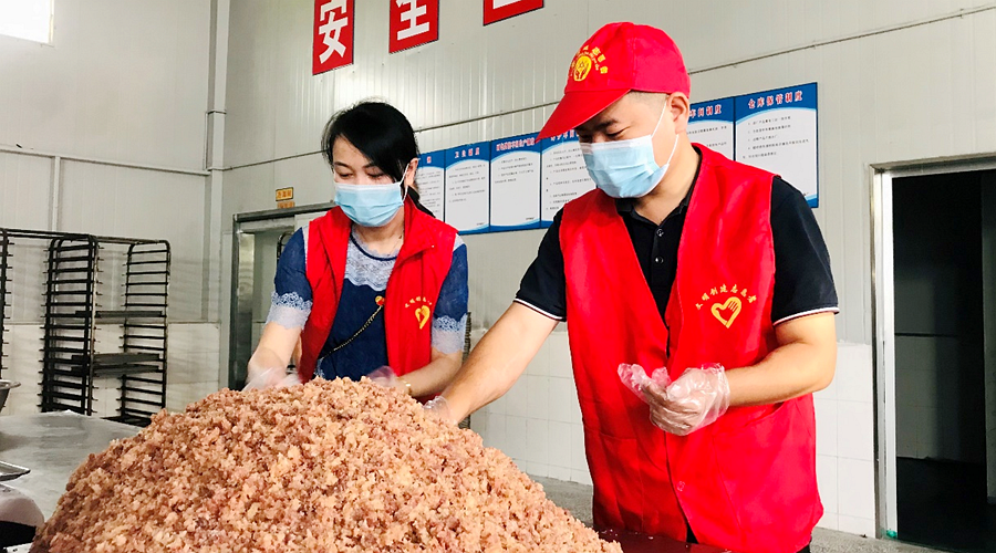 上午9点,桃源县融媒体中心志愿者们聚集在一起,“洗手、消毒、戴口罩、带手套……”做好了一切准备工作后,开始动手制作月饼,揉馅、包面、压模,经过一系列有条不紊的制作,一个个月饼终于成型了。