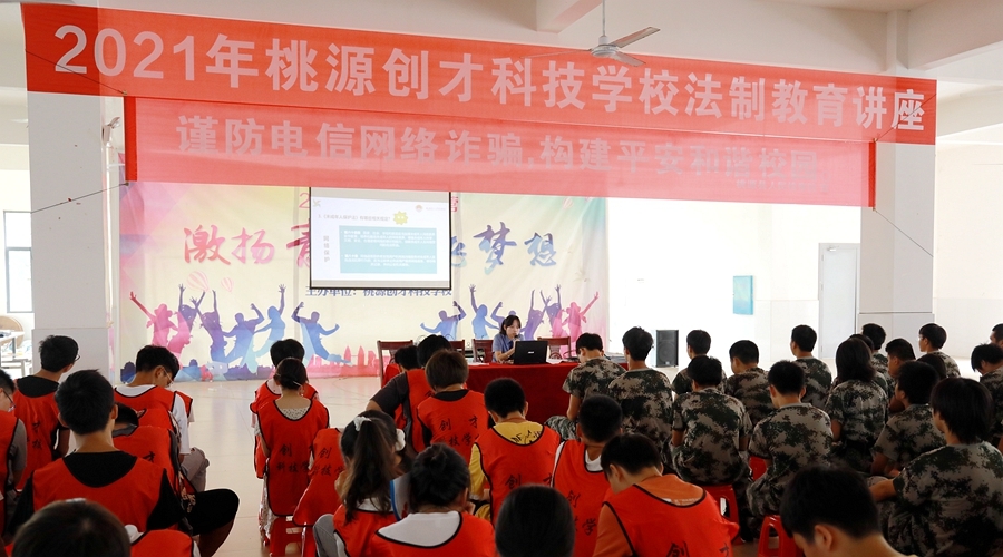 为进一步提高未成年人的自我保护意识和能力,守护平安校园,近日,桃源县人民检察院相关负责人带队来到桃源创才科技学院开展法治宣讲活动,为该校600余名学生送来了“开学第一课”。
