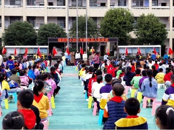 2021年10月12日上午,桃源县桃师附属小学举行了一场以“红领巾,我为你自豪”为主题的庄严而又隆重的新队员入队仪式。