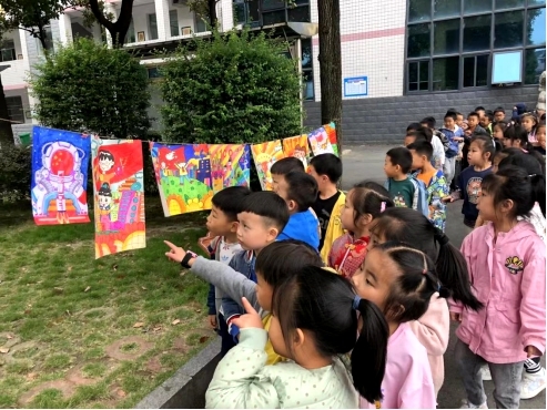 清晨,科教楼下,两名小提琴手从容优雅地演奏着少年先锋队队歌,琴声悠扬,行人纷纷驻足,侧耳倾听。校道旁,展示着学生的优秀作品——以“让红领巾更加鲜艳”为主题的手抄报和以“我和我的祖国”为主题的绘画作品,为建队日喝彩。
