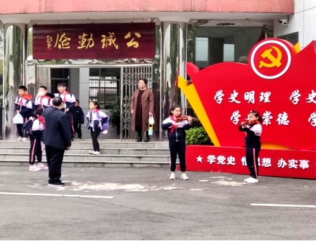 下午队会课,学校组织了新队员的入队仪式。讲解员在学校各个理论基地依次向一年级新生绘声绘色地讲解队史。