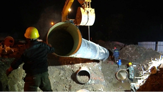 晚上10点,随着主管阀门的关闭,近70名员工,分2个工作面同时施工。县市政服务中心主任李平同志对这项工程极为重视,分析研究方案并亲临现场指挥施工,为工人们加油鼓劲。