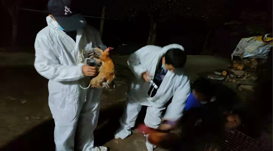 动物防疫员为养殖户家禽注射禽流感疫苗
