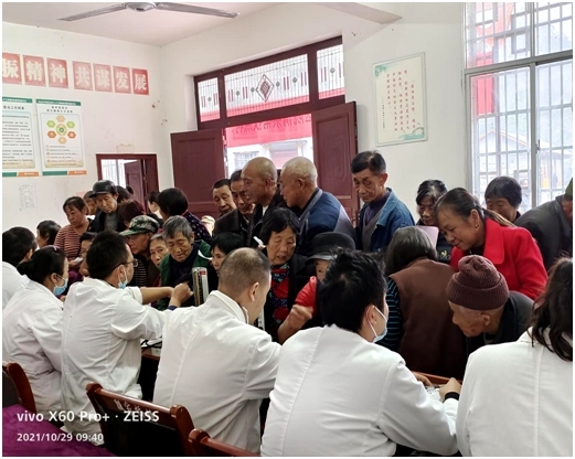 2021年10 月 29 日,我院组织24名医务人员,在总支书记邹浩、业务院长李毅刚、鲁俊的带领下,冒雨到帮扶点村牛车河殷家桥村部展开助力乡村振兴义诊活动,把党和政府的温暖送到群众家中。