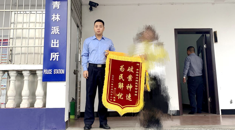近日,桃源县公安局青林派出所收到了辖区群众送来的一面绣有“为民解忧,破案神速”的锦旗,感谢民警为其追回损失。