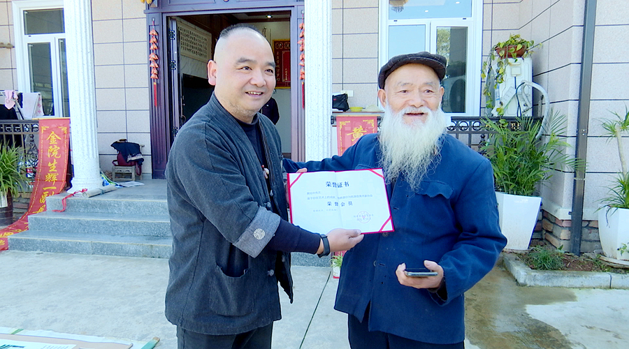 昨天上午,县文联工作人员来到黄老家中,欣赏了这幅百米巨制,向他颁发了“桃源县美术家协会荣誉会员”证书,并赠送了书籍和画册。