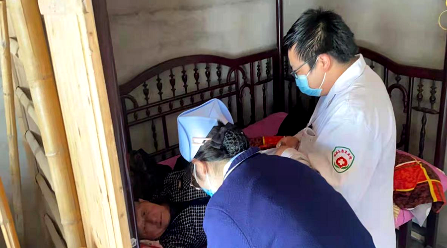 (康复医院专家上门为卧病在床的退役老兵问诊)