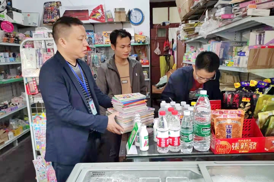 此次行动主要对一中、九中、漳江中学等学校周边书店、文体用品店进行出版物检查。重点检查了经营单位是否持有出版物经营许可证,是否按规定保留相关台账资料,是否违规销售中小学教材,是否销售侵权盗版教辅资料,是否销售含有危害青少年身心健康内容的违禁出版物等,同时要求经营业主要严格遵守法律规定,坚持合法诚信经营,拒绝虚假宣传,切实维护消费者的合法权益。