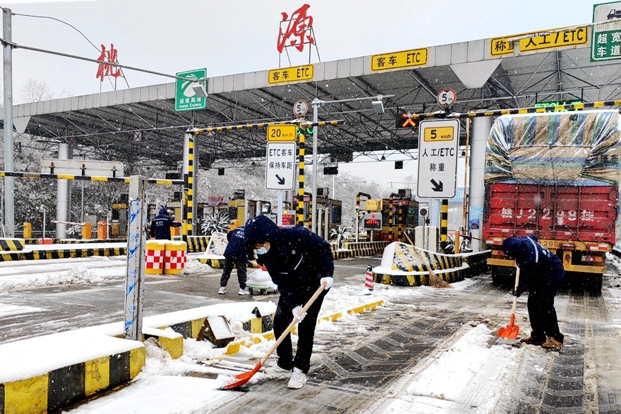 12月26日,一场大雪不期而至,气温骤降,给道路交通带来了极大的不便,湖南高速公路集团有限公司常德分公司桃源中心站职工们奋战在抗击冰雪一线,用坚守诠释责任、用奉献诠释担当,不畏严寒,浴“雪”奋战,用实际行动确保道路畅通无阻。