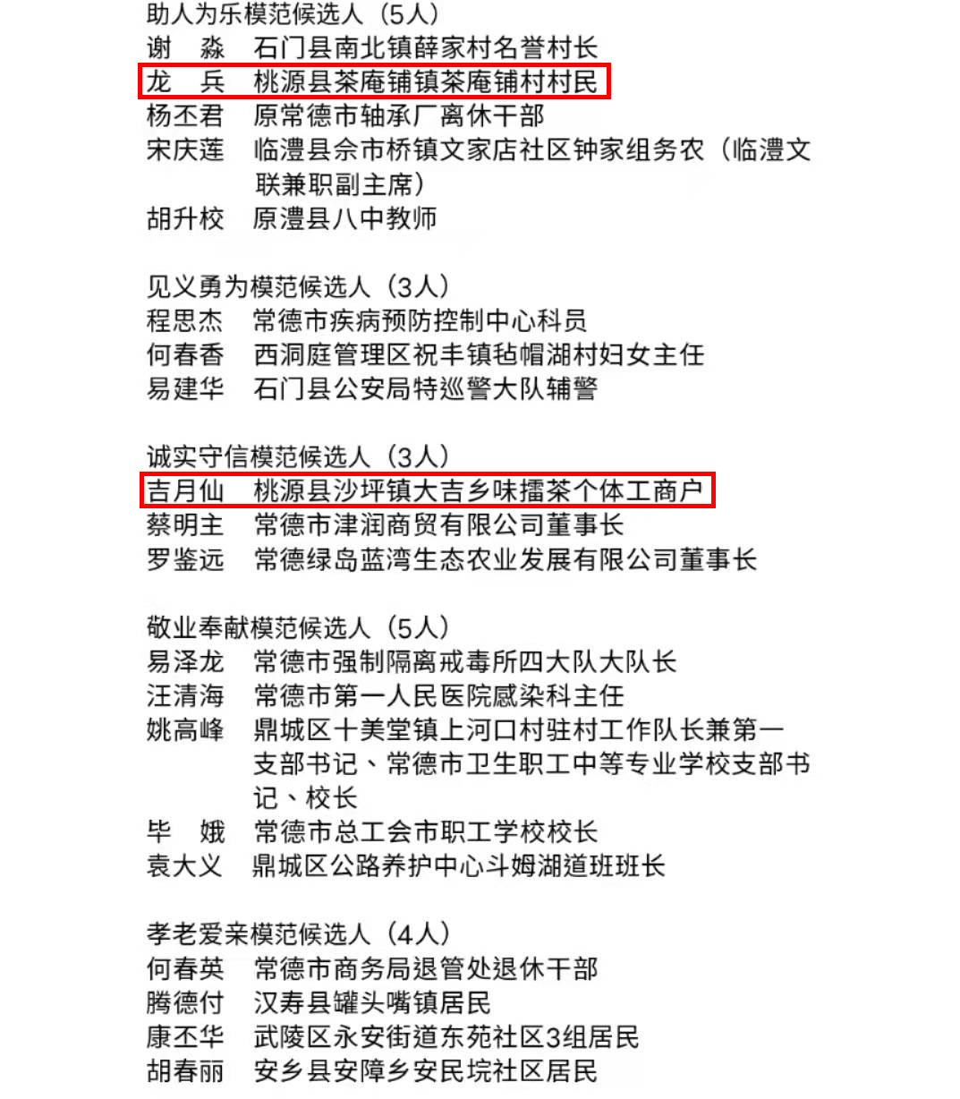 根据第五届常德市道德模范评选工作方案,市文明办组织开展了第五届常德市道德模范评选活动。经各地各单位层层推荐和评选委员会遴选、市文明委领导审定,拟将谢淼等人作为第五届常德市道德模范进行表彰。按照程序,现将候选人名单予以公示,广泛听取社会各界意见,接受广大群众监督。如有意见和建议,可通过信函、邮件、电话等方式从公示之日起一周内向市文明办反映。通讯地址:常德市武陵区建设东路88号常德市文明办;联系电话/传真:0736-7786737、13975675518;电子邮箱:hncdwmb6737@163.com。