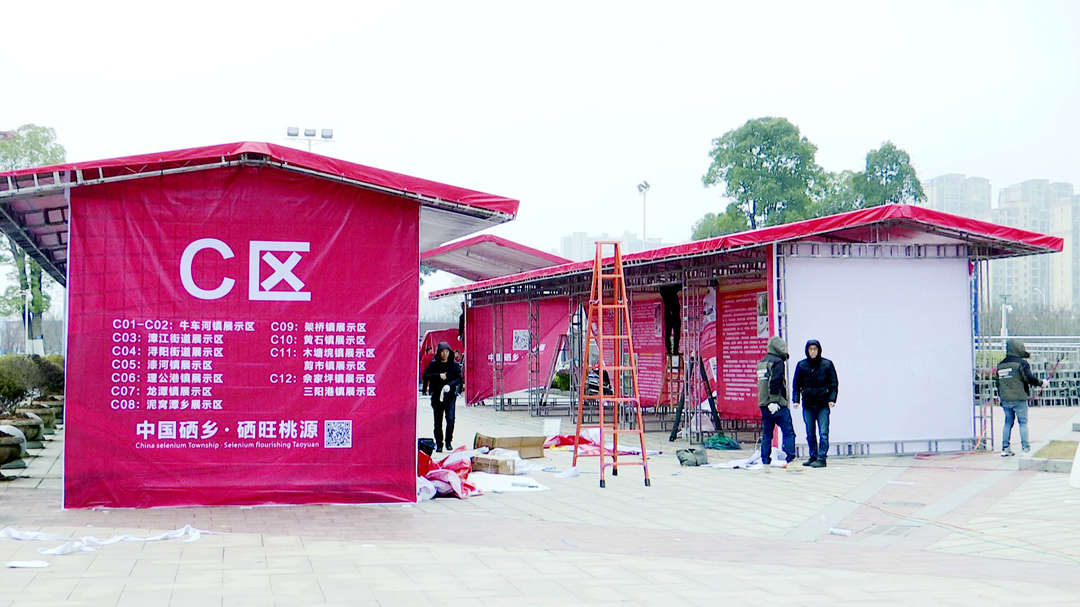 今天上午,记者来到活动举办现场看到,各项筹备工作已接近尾声,部分展区已经布设完成。此次展会举办时间为1月7日至10日,共设有富硒展位12个、乡镇展位28个、特色小吃展位10个,采取现场展销、网络直播等方式,集中展销了稻米、食用油、茶叶、果蔬、葛根、皇菊等优质富硒农产品和腊肉、腊鱼、蒿子粑粑、红薯粉丝等桃源特色年货。