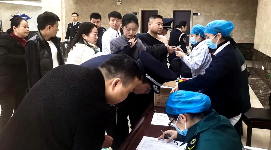县人民医院院长钟兵亲自调度,决定在第二个中国人民警察节当天,派医生护士上门到县公安局,利用人员集中的有利时机,给应接种而没有接种加强针的民辅警接种新冠肺炎疫苗加强针。