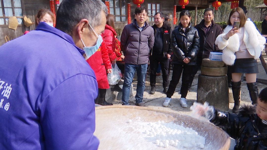 【同期声】 游客 蔡伟:刚刚体验了一下手工元宵的传统做法,感觉还是有很高的技术含量,然后吃了自己做的元宵,非常好吃,我希望这种传统手工的东西会一直在我们乡间继续流传下去。