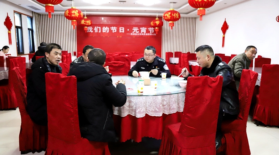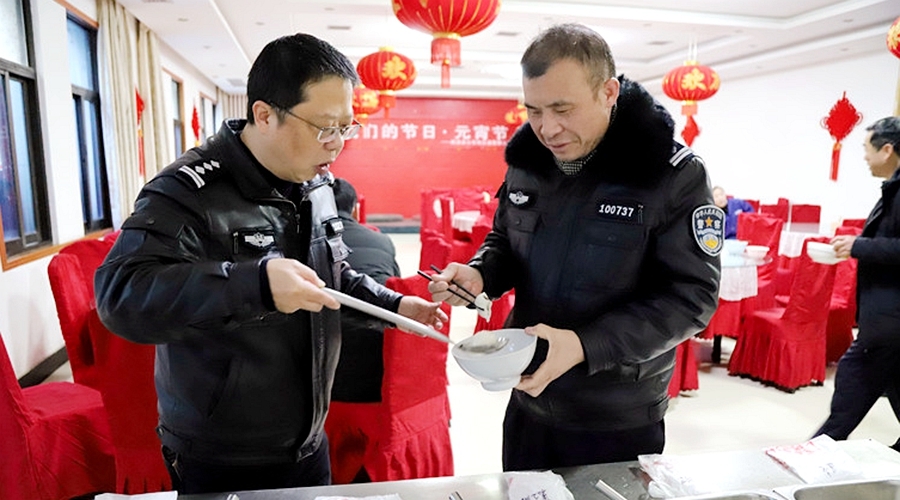 一清早,大队在食堂安排了元宵早餐,让全体民辅警吃上一碗热气腾腾、又香又软又糯又甜的各种类馅的元宵,并由大队领导亲自放到民辅警的碗里,大家挤挤一堂,共话节日快乐,感受传统节日气氛。