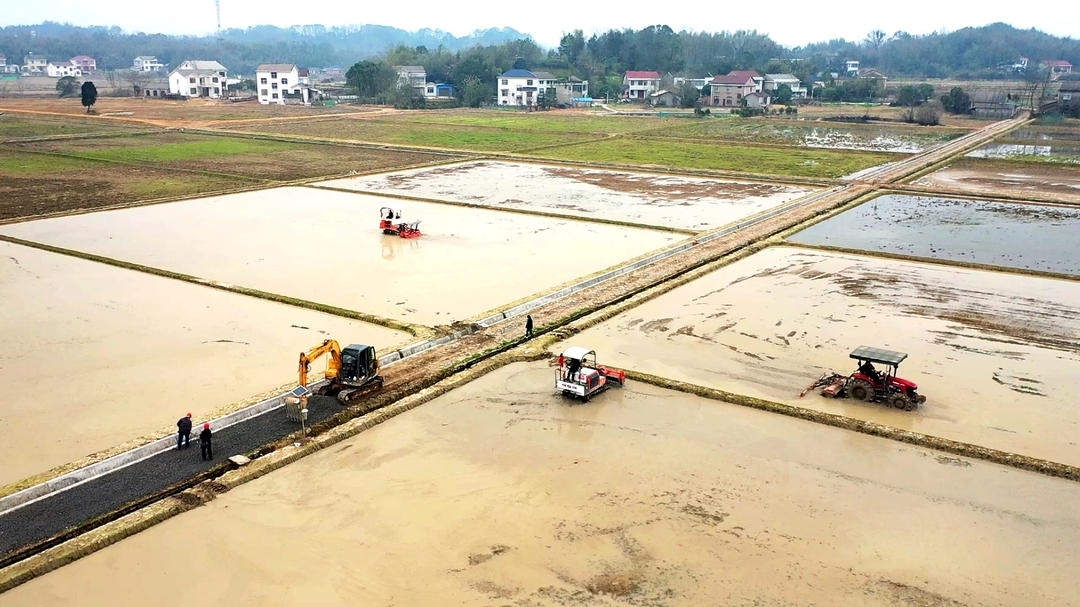 眼下正是春耕时节,桃源县农村广袤的田野上呈现一幅幅热火朝天春耕备耕的繁忙景象。在浔阳街道大平村新建成的2000亩连片高标准农田里,一台台旋耕机正来回穿梭、作业不停。过去一年,桃源建设高标准农田面积12.22万亩,总投资约1.96亿元,项目区共涉及浔阳街道、佘家坪镇、木塘垸镇等7个乡镇33个行政村,建设内容主要包括高效节水灌溉面积0.5万亩,整修堰塘310座,衬砌渠道214.43公里,新建及维修改造碎石机耕道206.12公里。在全县140多万亩耕地中,已建成高标准农田79.88万亩,占比过半。