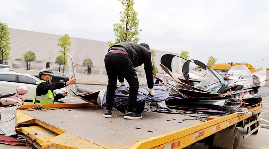 县交警大队:重拳出击,深入企业开展“拆棚行动”