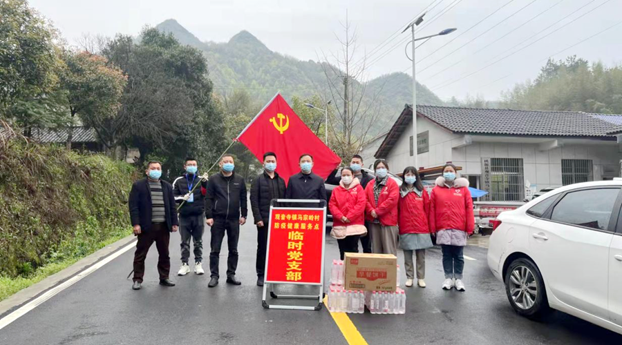 观音寺守土有责,在与怀化接壤的各村均竖起党旗,党委迅速成立临时党支部,组织党员集中庄严宣誓,在各个路口严查入桃人员,对过往车辆严格遵循“四查一询”措施,并设立了临时核酸检测点。各防控路口充分发挥党员先锋模范作用,鲜艳的党旗在边陲小镇防疫一线高高飘扬。