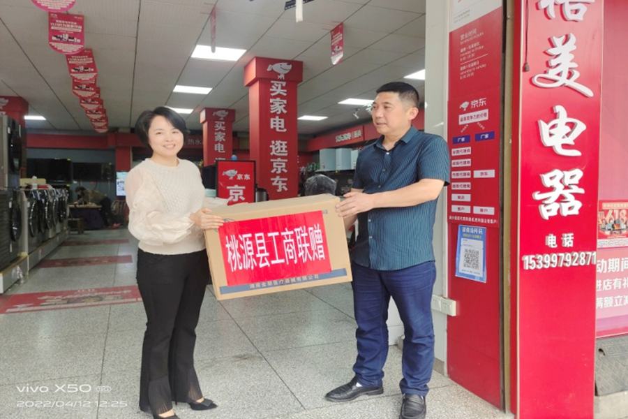 4月12日,桃源县委统战部副部长、工商联党组书记罗建华一行深入茶庵铺镇开展走访调研活动,并为当地的商会捐赠了医疗物质。