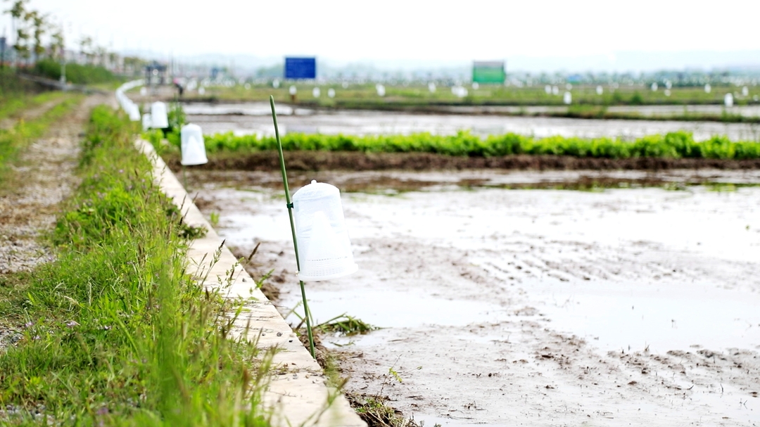 种粮大户官志刚:前段时间,我们已经采取了深翻耕、灌深水、灭蛹的措施,接下来,这些诱捕器将为我们防治二化螟上第二道保险。