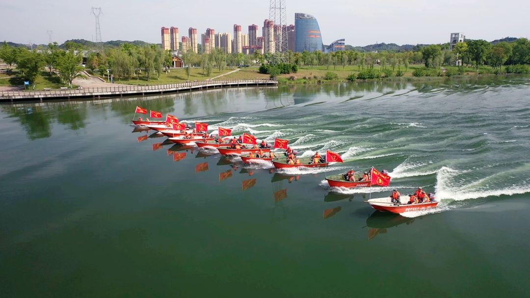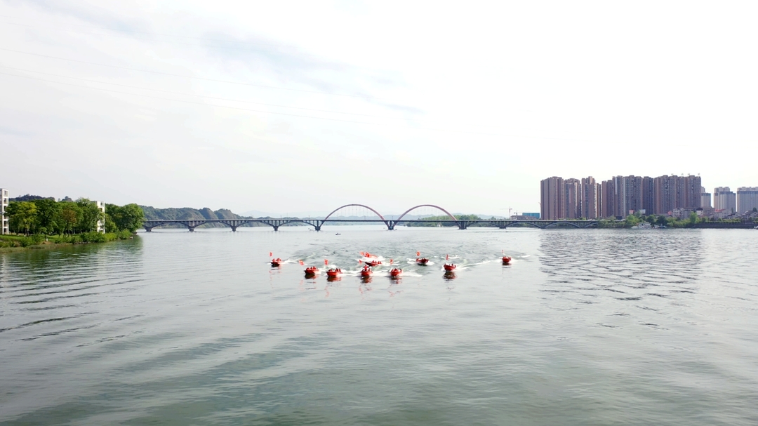 在沅水桃源段江面,50名参训人员统一着装,分别乘坐10艘冲锋舟开展水上搜索训练。随着指挥一声令下,大家迅速响应。宽阔的沅水江面上,冲锋舟队伍时而并驾齐驱、时而排成一条直线,时而呈三角形方队,像一条条飞鱼在水里疾驰穿梭,在一次次乘风破浪中强化操舟技能和应急应战水平。