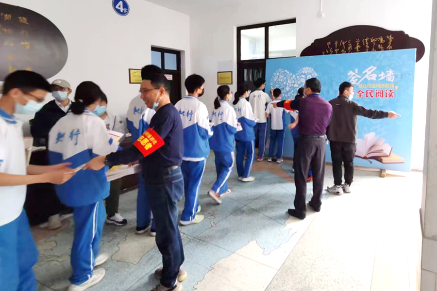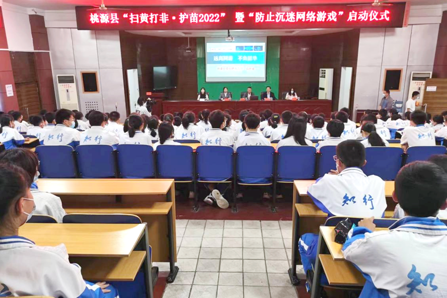 4月22日,在第27个“世界读书日”来临之际,为进一步加强预防未成年人网络沉迷宣传教育,县委宣传部、教育局、文旅广体局、团县委共同走进文昌中学,联合举办桃源县“扫黄打非·护苗2022”暨“防止沉迷网络游戏”启动仪式。