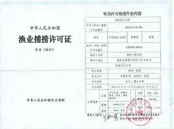 为贯彻落实《农业农村部办公厅关于加强和规范长江流域水生生物监测调查工作的通知》(农办长渔[2021]2号)及长江十年禁渔相关文件精神,进一步强化渔业资源监测评估工作,根据农业农村部长江流域渔政监督管理办公室相关要求,经省农业农村厅批准,由湖南省水生生物资源监测中心沅江澧水监测站(湖南文理学院)在沅江陬市镇洋洲水域开展科研特许捕捞活动,现将有关情况公告如下: