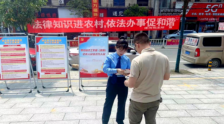 为进一步强化“法治进农村”普法宣传教育力度,充分践行“我为群众办实事”实践活动,5月,桃源县漆河司法所以漆河场期为契机,开展了以“美好生活,法治同行”为主题的农村法治宣传活动。