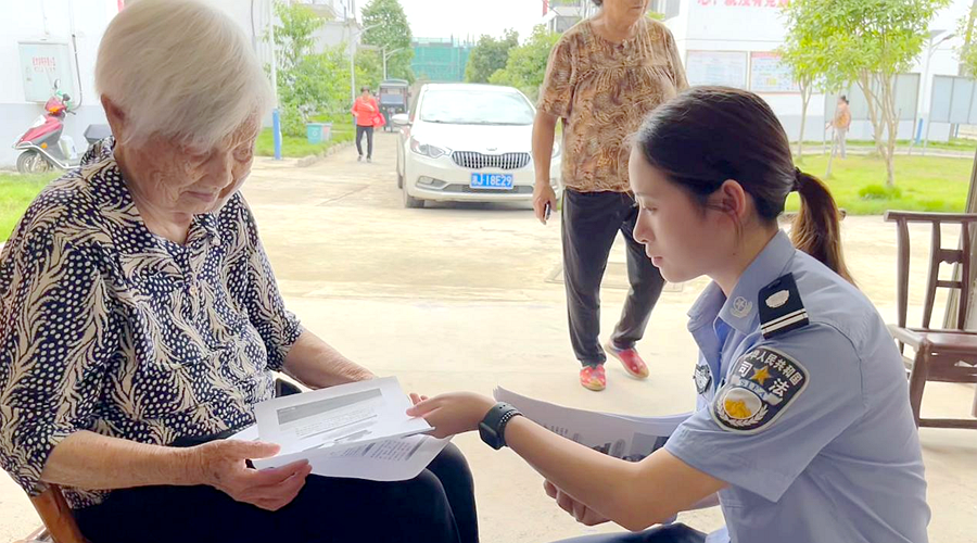 司法所工作人员发放宣传资料
