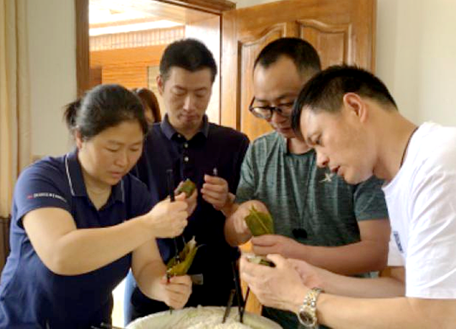 沅水湿地公园管理处开展我们的节日“端”出幸福,“午”住健康包粽子活动,单位莫股长“老手”带着“新手”,卷粽叶、放糯米,相互配合十分默契,大家相互学习包粽子的技巧和手法,现场气氛热烈,充满欢乐和谐的节日氛围,通过包粽子活动让干部职工体验了传统文化魅力。