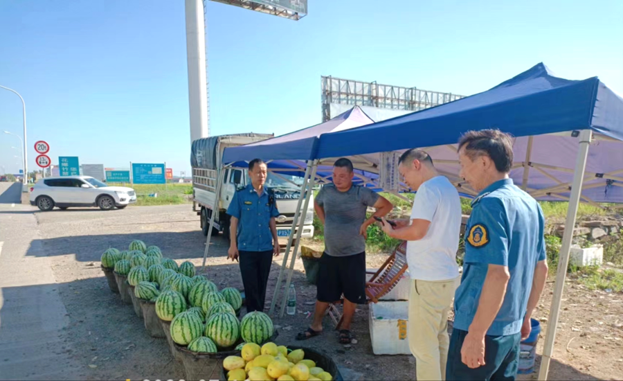 入夏以来,瓜果成熟,在省道S311、S234、S318等公路沿线,许多葡萄园、西瓜地的果农们为方便贩卖,采取了临近公路摆摊设点、占道经营、乱堆乱放、乱搭乱建等行为的贩卖方式,对公路通行安全造成了一定影响。为消除交通安全隐患,路政人员与果农们面对面的沟通,宣传公路法律知识,讲解威胁通行安全的危害。通过积极沟通和宣传,取得了果农们的理解和配合,主动清理和撤除了摊点。