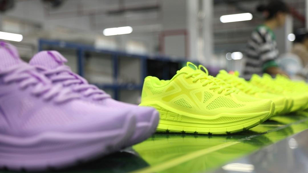 湖南嘉泰鞋业有限公司工艺部主任高先钟:市场上基本上卖断货,每天客人都催着我们生产、立马要出货。市场上只要一出货,当天就卖完了,供不应求。目前我手上下单的是一万六千双,已经出货一万双,一出到市场上就卖完了。