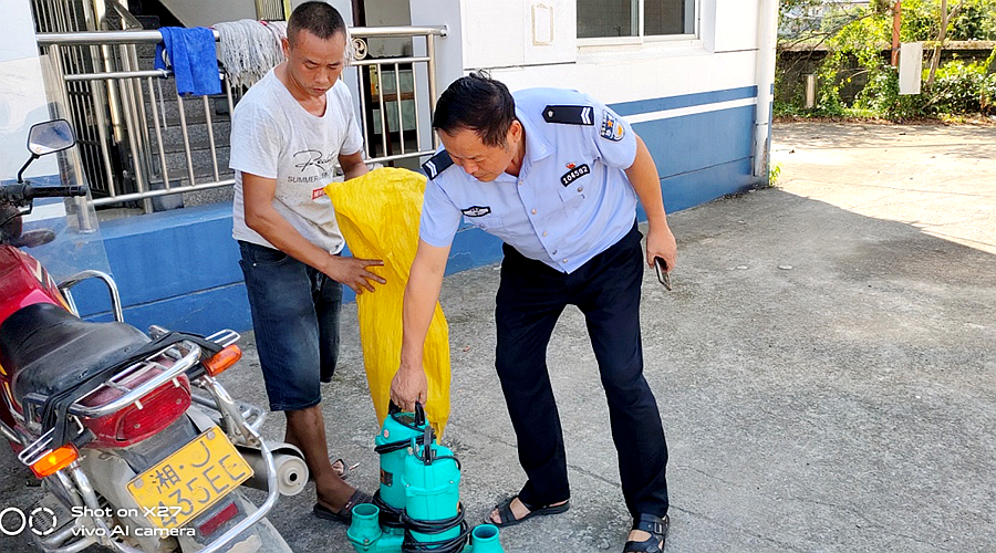 8月20日凌晨4时,观音寺镇会人溪村两台正在为村民抗旱抽水的水泵被盗。派出所民警接到报警后,迅速赶往现场,通过“雪亮工程”监控,结合调查走访,民警锁定辖区黄某有重大作案嫌疑。当天上午8时,民警将黄某抓获并追回被盗水泵,保住了抗旱工作的进行。