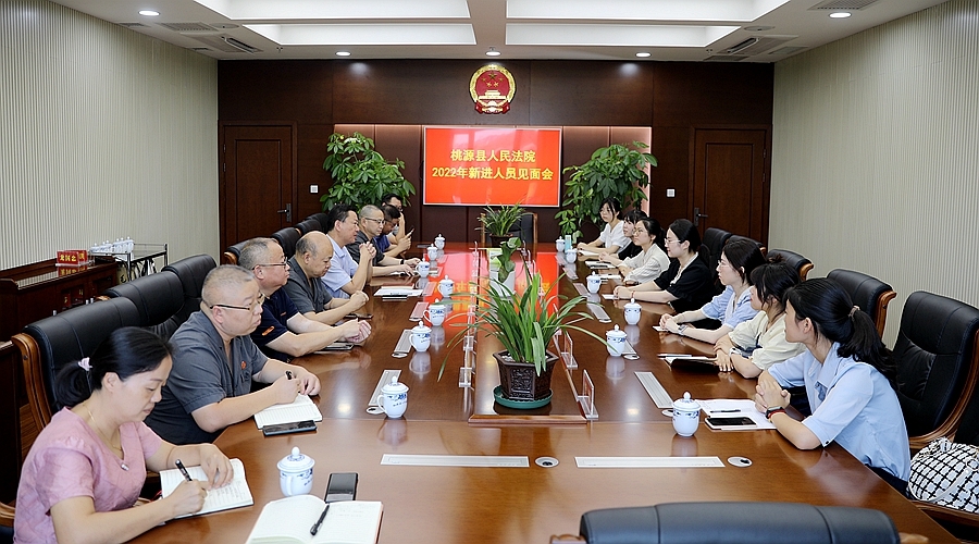 8月22日下午,桃源县人民法院召开2022年度新录用公务员入职见面会,欢迎7名新干警加入桃源法院大家庭,院领导班子成员参加会议。