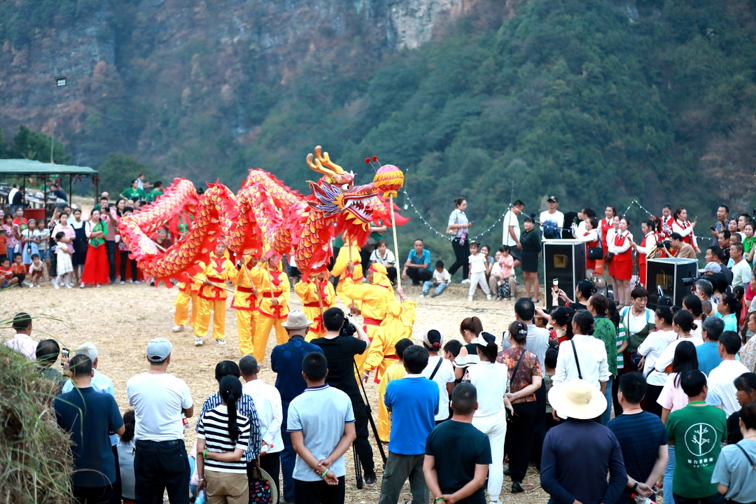 暮色苍茫,星星还未暗探出头来,但梨树垭村的高山梯田里早已热闹非凡,颇有当地特色的舞龙灯、歌伴舞等民俗表演引来观众无数喝彩。