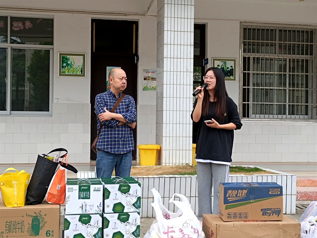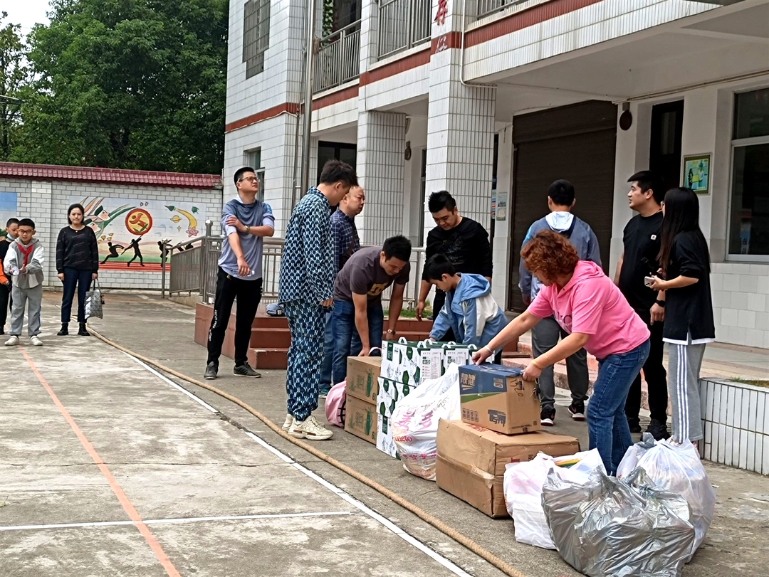 爱心人士们给孩子们带来了许多文具用品、运动器材、玩具、牛奶等爱心物资。孩子们接过礼物,脸上洋溢着幸福的笑容,纷纷向他们说:“谢谢。”