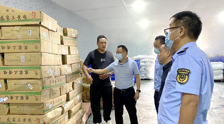 最后,检查组一行来到桃花鸭科技有限公司,程斌辉现场检查了厂区生产环境条件、进货查验记录、原辅料存放、食品添加剂使用、生产加工过程控制等情况。他要求:一是各食品经营企业要严格监管防范食品安全风险,守住食品安全的底线;二是部门执法人员要督促企业严格落实食品安全主体责任,加强食品安全质量安全管控水平,确保人民群众“舌尖上的安全”。
