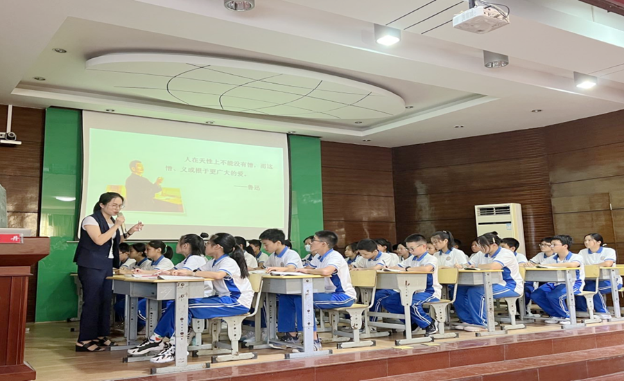 本次活动的主题是探究新课标背景下初中语文单元整体教学,研修形式为“示范教学+专家引领”。陬市中学老师罗兰执教的《写颁奖词 礼赞美好人生》按照“认识颁奖词、剖析颁奖词、学写颁奖词”的思路开展教学,抽丝剥茧,极大地调动了孩子们的积极性,孩子们当堂撰写的颁奖词惊艳全场。长沙市开福区第一中学老师唐丹执教的《学医从文中的爱国情怀——分享鲁迅的人生经历与情感体验》带领孩子们探究了三个问题:鲁迅从来到东京最后离开仙台的过程和心理变化、写和藤野先生无关的见闻和感受的目的、理解藤野先生的“伟大”。孩子们在老师的启发与鼓励下,思维迅速打开,各种见解汩汩而出,迎来全场热烈的掌声。两堂精彩的示范课让学员们初步领略了单元整体教学的实践之妙。