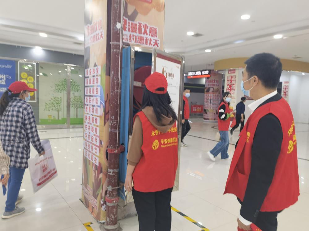 志愿者检查超市消防安全现场