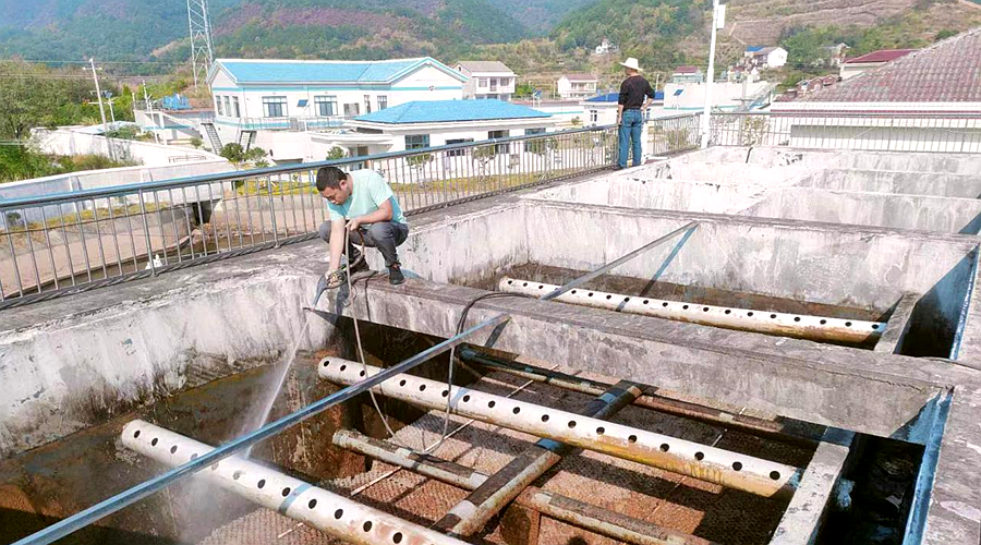首先,工作人员快速对供水设施设备进行了拆卸、测试和维护。然后,用高压水枪、刷子等工具对沉淀池内斜管、集水槽和池壁上的附着物进行无死角反复清洗,使用专业消毒剂对水池进行彻底消毒,保证水池清洁卫生。检修、清洗、消毒工作结束后,经检测中心检测,水质指标达出厂水标准才开始供水。