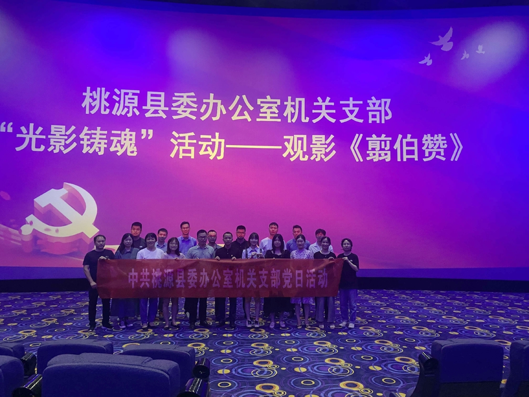 为庆祝中国共产党成立102周年,桃源县委办组织开展了一系列活动:6月30日上午,县委办相关负责人走访慰问了困难党员,为他们送上组织的关怀并致以诚挚的问候;下午,县委办机关支部组织全体干部观看革命历史题材影片《翦伯赞》,观影的党员干部纷纷表示,从影片中的革命先辈身上感受到浩然正气和一股强大的精神力量,要把此次观影的震撼带入到主动担当作为的具体工作中,为全力推动桃源县高质量发展贡献力量。