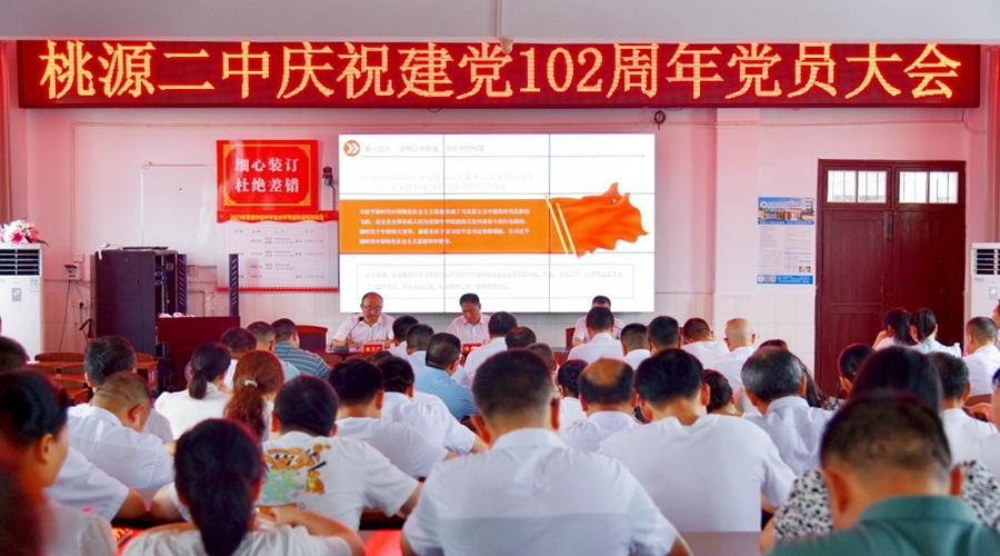 为庆祝中国共产党成立102周年,深入学习贯彻习近平新时代中国特色社会主义思想和党的二十大精神,进一步激发广大党员干事创业的责任感和使命感,推进“一强两促三提升”活动深入开展,近日,桃源县第二中学召开了庆祝建党102周年党员大会暨党员励志演讲活动。